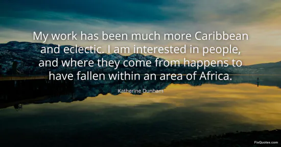 Dunham, Katherine. (2026, January 15). My work has been much more Caribbean and eclectic. I am interested in people, and where they come from happens to have fallen within an area of Africa. FixQuotes. https://fixquotes.com/quotes/my-work-has-been-much-more-caribbean-and-eclectic-149079/