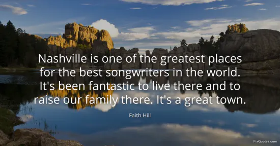 Hill, Faith. (2026, January 16). Nashville is one of the greatest places for the best songwriters in the world. It's been fantastic to live there and to raise our family there. It's a great town. FixQuotes. https://fixquotes.com/quotes/nashville-is-one-of-the-greatest-places-for-the-89849/
