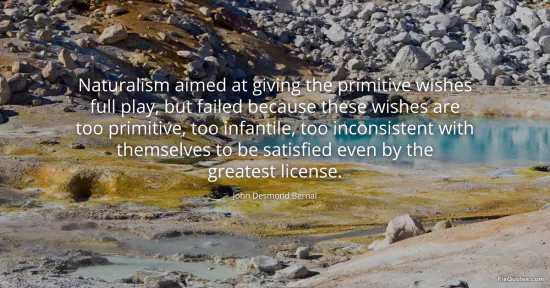 Bernal, John Desmond. (2026, February 19). Naturalism aimed at giving the primitive wishes full play, but failed because these wishes are too primitive, too infantile, too inconsistent with themselves to be satisfied even by the greatest license. FixQuotes. https://fixquotes.com/quotes/naturalism-aimed-at-giving-the-primitive-wishes-51863/
