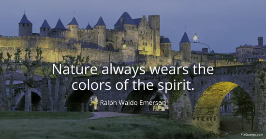 Emerson, Ralph Waldo. "Nature always wears the colors of the spirit." FixQuotes. January 15, 2026. https://fixquotes.com/quotes/nature-always-wears-the-colors-of-the-spirit-14196/.