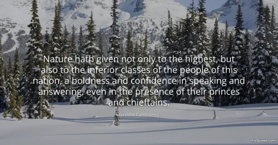 Cambrensis, Giraldus. "Nature hath given not only to the highest, but also to the inferior classes of the people of this nation, a boldness and confidence in speaking and answering, even in the presence of their princes and chieftains." FixQuotes. February 16, 2026. https://fixquotes.com/quotes/nature-hath-given-not-only-to-the-highest-but-164730/.