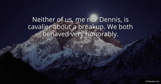Ryan, Meg. "Neither of us, me nor Dennis, is cavalier about a breakup. We both behaved very honorably." FixQuotes. January 16, 2026. https://fixquotes.com/quotes/neither-of-us-me-nor-dennis-is-cavalier-about-a-113809/.