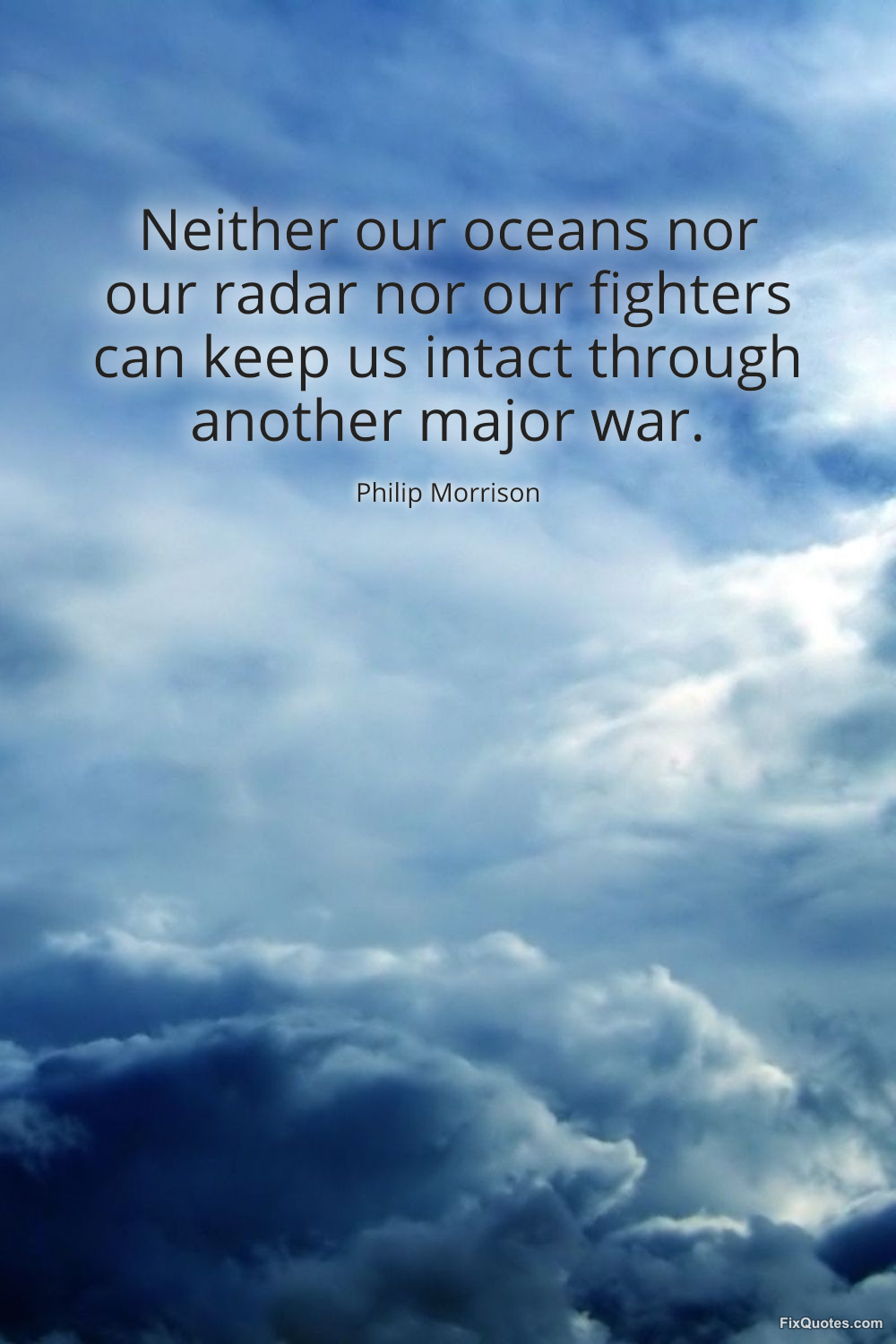Morrison, Philip. "Neither our oceans nor our radar nor our fighters can keep us intact through another major war." FixQuotes. January 16, 2026. https://fixquotes.com/quotes/neither-our-oceans-nor-our-radar-nor-our-fighters-126495/.
