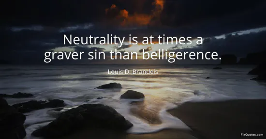 Brandeis, Louis D. (2026, January 17). Neutrality is at times a graver sin than belligerence. FixQuotes. https://fixquotes.com/quotes/neutrality-is-at-times-a-graver-sin-than-81534/