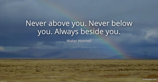Winchell, Walter. (2026, January 16). Never above you. Never below you. Always beside you. FixQuotes. https://fixquotes.com/quotes/never-above-you-never-below-you-always-beside-you-116519/