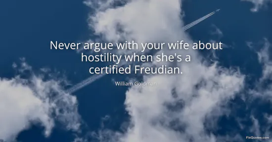 Goldman, William. "Never argue with your wife about hostility when she's a certified Freudian." FixQuotes. January 16, 2026. https://fixquotes.com/quotes/never-argue-with-your-wife-about-hostility-when-117959/.