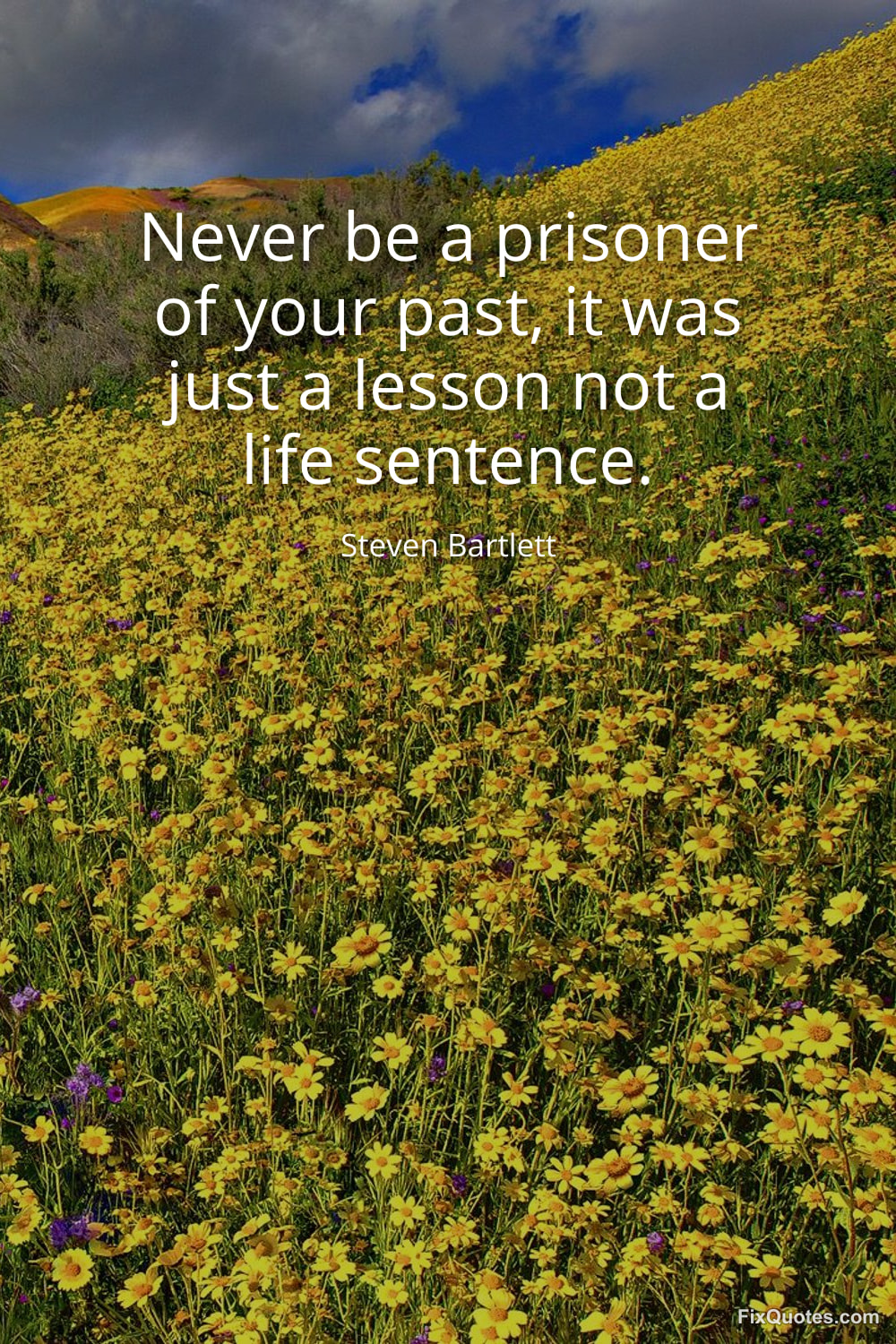 Bartlett, Steven. "Never be a prisoner of your past, it was just a lesson not a life sentence." FixQuotes. January 25, 2026. https://fixquotes.com/quotes/never-be-a-prisoner-of-your-past-it-was-just-a-184283/.