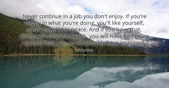 "Never continue in a job you don't enjoy. If you're happy in what you're doing, you'll like yourself, you'll have inner peace. And if you have that, along with physical health, you will have had more success than you could possibly have imagined." FixQuotes, 16 Jan. 2026, https://fixquotes.com/quotes/never-continue-in-a-job-you-dont-enjoy-if-youre-92055/. Accessed 12 Feb. 2026.