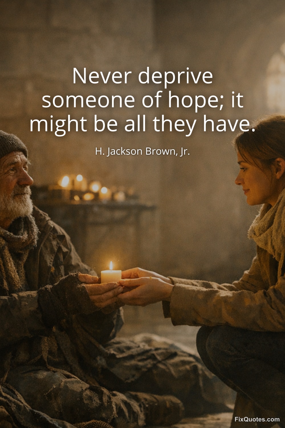 Jr., H. Jackson Brown,. (2026, January 13). Never deprive someone of hope; it might be all they have. FixQuotes. https://fixquotes.com/quotes/never-deprive-someone-of-hope-it-might-be-all-54903/