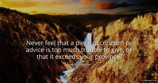 Mountbatten, Lord. (2026, January 15). Never feel that a piece of criticism or advice is too much trouble to give, or that it exceeds your province. FixQuotes. https://fixquotes.com/quotes/never-feel-that-a-piece-of-criticism-or-advice-is-155331/