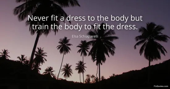 Schiaparelli, Elsa. "Never fit a dress to the body but train the body to fit the dress." FixQuotes. January 15, 2026. https://fixquotes.com/quotes/never-fit-a-dress-to-the-body-but-train-the-body-56119/.