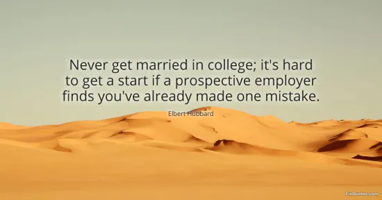 Hubbard, Elbert. (2026, January 18). Never get married in college; it's hard to get a start if a prospective employer finds you've already made one mistake. FixQuotes. https://fixquotes.com/quotes/never-get-married-in-college-its-hard-to-get-a-19251/