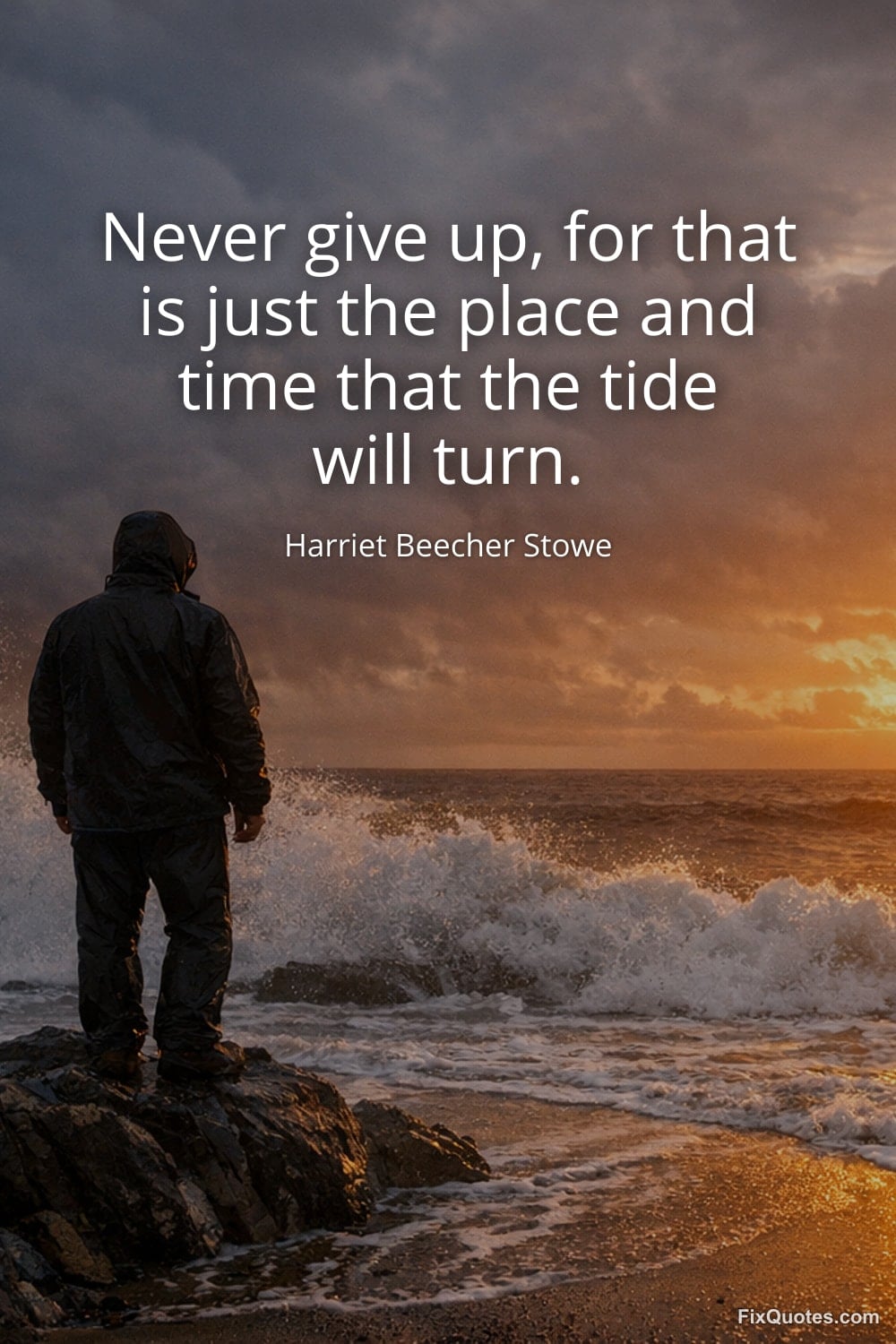 Stowe, Harriet Beecher. (2026, January 13). Never give up, for that is just the place and time that the tide will turn. FixQuotes. https://fixquotes.com/quotes/never-give-up-for-that-is-just-the-place-and-time-158391/