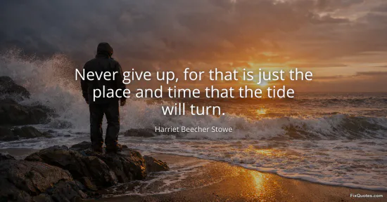 Stowe, Harriet Beecher. "Never give up, for that is just the place and time that the tide will turn." FixQuotes. January 13, 2026. https://fixquotes.com/quotes/never-give-up-for-that-is-just-the-place-and-time-158391/.