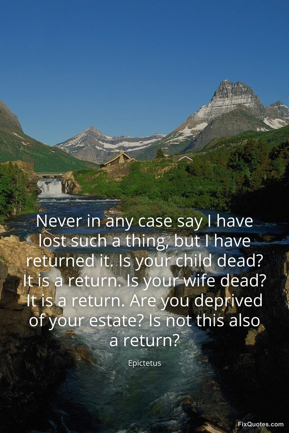 Epictetus. "Never in any case say I have lost such a thing, but I have returned it. Is your child dead? It is a return. Is your wife dead? It is a return. Are you deprived of your estate? Is not this also a return?" FixQuotes. January 15, 2026. https://fixquotes.com/quotes/never-in-any-case-say-i-have-lost-such-a-thing-35179/.