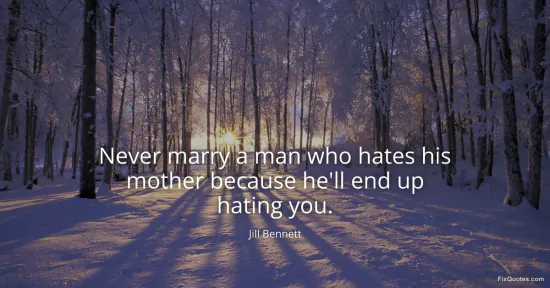Bennett, Jill. (2026, January 15). Never marry a man who hates his mother because he'll end up hating you. FixQuotes. https://fixquotes.com/quotes/never-marry-a-man-who-hates-his-mother-because-169481/