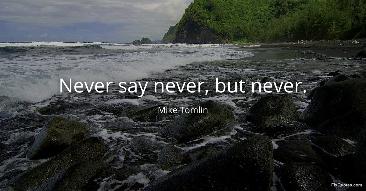Tomlin, Mike. "Never say never, but never." FixQuotes. Accessed February 2, 2026. https://fixquotes.com/quotes/never-say-never-but-never-184464/.
