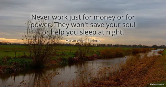 Edelman, Marian Wright. (2026, January 16). Never work just for money or for power. They won't save your soul or help you sleep at night. FixQuotes. https://fixquotes.com/quotes/never-work-just-for-money-or-for-power-they-wont-88519/