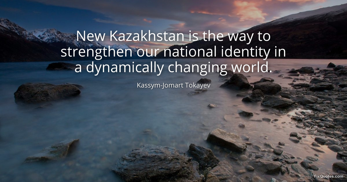 Tokayev, Kassym-Jomart. (2026, February 16). New Kazakhstan is the way to strengthen our national identity in a dynamically changing world. FixQuotes. https://fixquotes.com/quotes/new-kazakhstan-is-the-way-to-strengthen-our-185545/