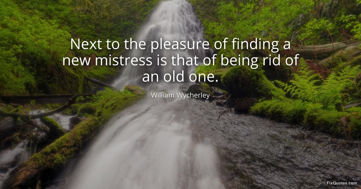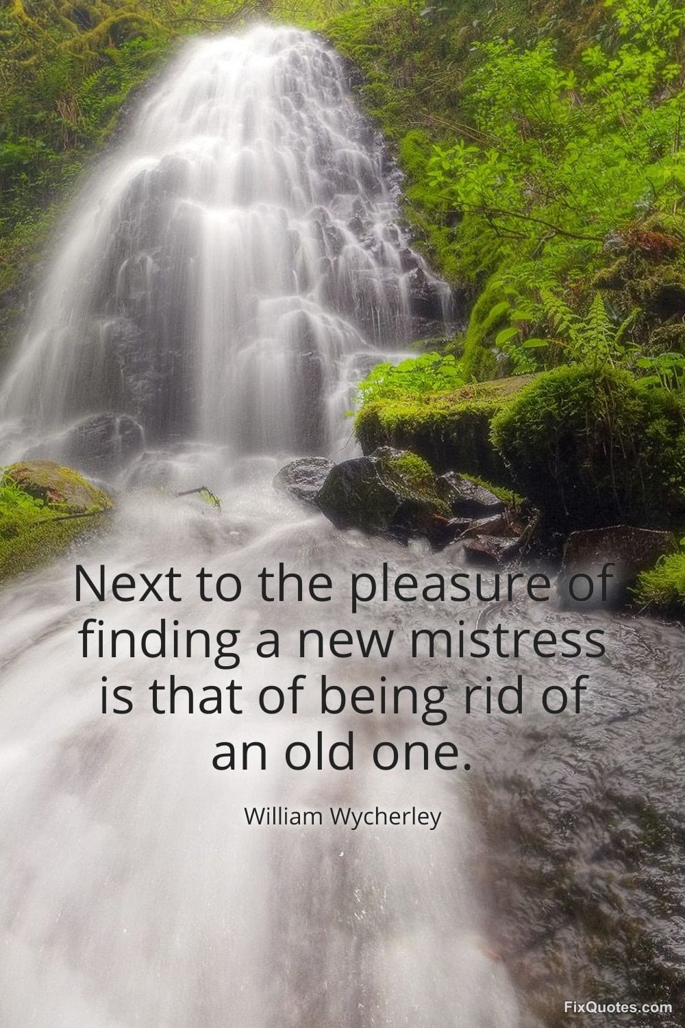 Wycherley, William. (2026, January 17). Next to the pleasure of finding a new mistress is that of being rid of an old one. FixQuotes. https://fixquotes.com/quotes/next-to-the-pleasure-of-finding-a-new-mistress-is-27647/