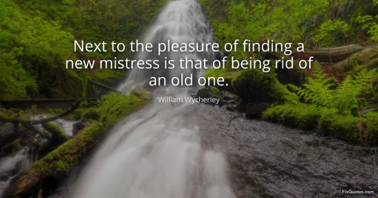 Wycherley, William. "Next to the pleasure of finding a new mistress is that of being rid of an old one." FixQuotes. January 17, 2026. https://fixquotes.com/quotes/next-to-the-pleasure-of-finding-a-new-mistress-is-27647/.
