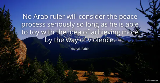 Rabin, Yitzhak. "No Arab ruler will consider the peace process seriously so long as he is able to toy with the idea of achieving more by the way of violence." FixQuotes. January 15, 2026. https://fixquotes.com/quotes/no-arab-ruler-will-consider-the-peace-process-154383/.