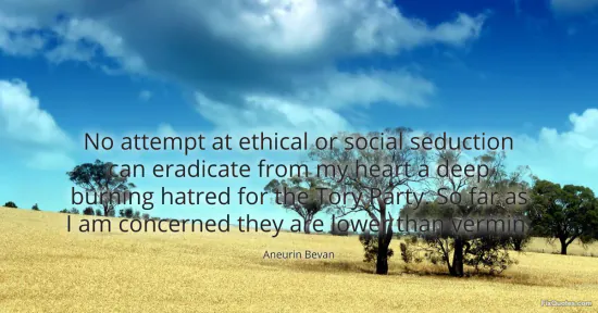 "No attempt at ethical or social seduction can eradicate from my heart a deep burning hatred for the Tory Party. So far as I am concerned they are lower than vermin." FixQuotes, 16 Jan. 2026, https://fixquotes.com/quotes/no-attempt-at-ethical-or-social-seduction-can-138881/. Accessed 12 Feb. 2026.