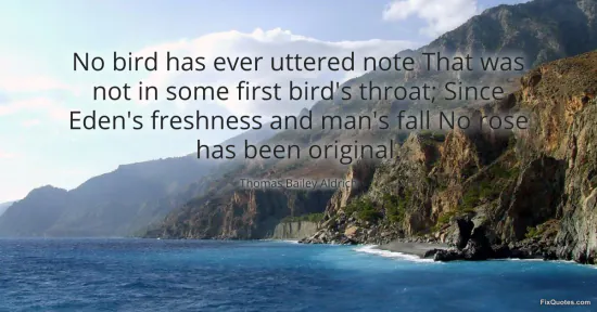 Aldrich, Thomas Bailey. "No bird has ever uttered note That was not in some first bird's throat; Since Eden's freshness and man's fall No rose has been original." FixQuotes. January 16, 2026. https://fixquotes.com/quotes/no-bird-has-ever-uttered-note-that-was-not-in-116910/.