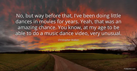 Walken, Christopher. "No, but way before that, I've been doing little dances in movies for years. Yeah, that was an amazing chance. You know, at my age to be able to do a music dance video, very unusual." FixQuotes. January 17, 2026. https://fixquotes.com/quotes/no-but-way-before-that-ive-been-doing-little-59935/.