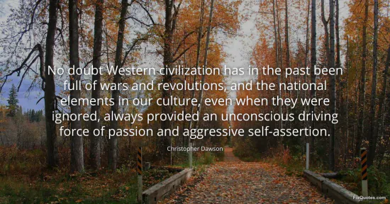 Dawson, Christopher. "No doubt Western civilization has in the past been full of wars and revolutions, and the national elements in our culture, even when they were ignored, always provided an unconscious driving force of passion and aggressive self-assertion." FixQuotes. January 17, 2026. https://fixquotes.com/quotes/no-doubt-western-civilization-has-in-the-past-41300/.