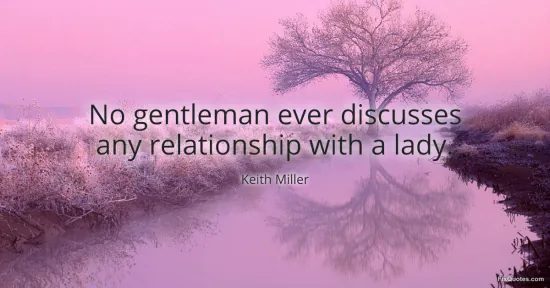 A line like this doesn’t just police manners; it polices power. “No gentleman” sounds like a compliment, but it’s really a gate: if you speak, you forfeit the badge. Miller’s phrasing turns discretion into a kind of masculinity test, where the reward is social credibility and the punishment is being branded vulgar. The sentence is clipped and absolute, with “ever” doing the heavy lifting. No exceptions. No nuance. That severity is the point: it’s etiquette as enforcement, not advice.