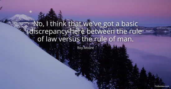 Moore, Roy. (2026, January 16). No, I think that we've got a basic discrepancy here between the rule of law versus the rule of man. FixQuotes. https://fixquotes.com/quotes/no-i-think-that-weve-got-a-basic-discrepancy-here-85940/
