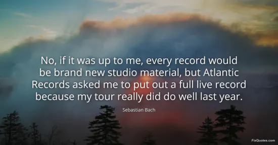 Bach, Sebastian. "No, if it was up to me, every record would be brand new studio material, but Atlantic Records asked me to put out a full live record because my tour really did do well last year." FixQuotes. February 16, 2026. https://fixquotes.com/quotes/no-if-it-was-up-to-me-every-record-would-be-brand-116399/.