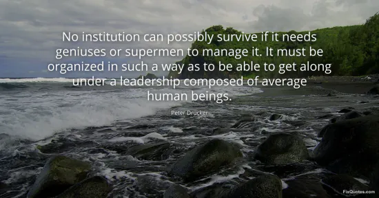 Drucker, Peter. (2026, January 15). No institution can possibly survive if it needs geniuses or supermen to manage it. It must be organized in such a way as to be able to get along under a leadership composed of average human beings. FixQuotes. https://fixquotes.com/quotes/no-institution-can-possibly-survive-if-it-needs-27332/