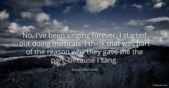 Deschanel, Zooey. "No, I've been singing forever. I started out doing musicals. I think that was part of the reason why they gave me the part, because I sang." FixQuotes. January 18, 2026. https://fixquotes.com/quotes/no-ive-been-singing-forever-i-started-out-doing-18292/.
