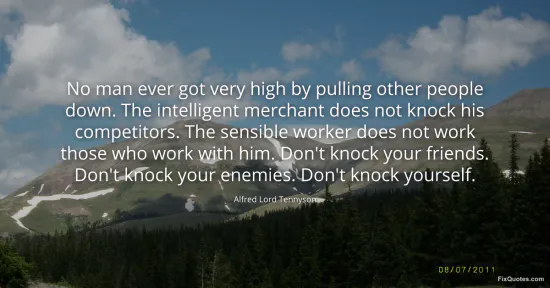"No man ever got very high by pulling other people down. The intelligent merchant does not knock his competitors. The sensible worker does not work those who work with him. Don't knock your friends. Don't knock your enemies. Don't knock yourself"