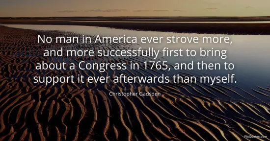 Gadsden, Christopher. (2026, January 17). No man in America ever strove more, and more successfully first to bring about a Congress in 1765, and then to support it ever afterwards than myself. FixQuotes. https://fixquotes.com/quotes/no-man-in-america-ever-strove-more-and-more-49258/