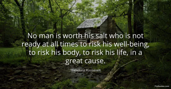 Roosevelt, Theodore. (2026, February 16). No man is worth his salt who is not ready at all times to risk his well-being, to risk his body, to risk his life, in a great cause. FixQuotes. https://fixquotes.com/quotes/no-man-is-worth-his-salt-who-is-not-ready-at-all-27967/