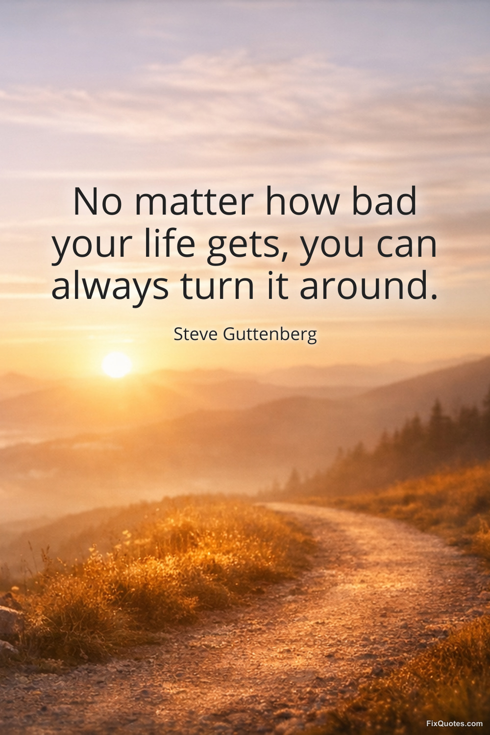 Guttenberg, Steve. (2026, March 19). No matter how bad your life gets, you can always turn it around. FixQuotes. https://fixquotes.com/quotes/no-matter-how-bad-your-life-gets-you-can-always-99082/