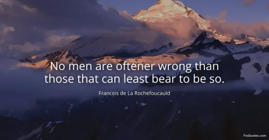 Rochefoucauld, Francois de La. "No men are oftener wrong than those that can least bear to be so." FixQuotes. January 16, 2026. https://fixquotes.com/quotes/no-men-are-oftener-wrong-than-those-that-can-13108/.