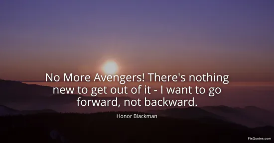 Blackman, Honor. "No More Avengers! There's nothing new to get out of it - I want to go forward, not backward." FixQuotes. January 17, 2026. https://fixquotes.com/quotes/no-more-avengers-theres-nothing-new-to-get-out-of-69616/.