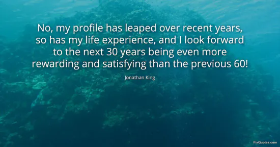 King, Jonathan. (2026, January 16). No, my profile has leaped over recent years, so has my life experience, and I look forward to the next 30 years being even more rewarding and satisfying than the previous 60! FixQuotes. https://fixquotes.com/quotes/no-my-profile-has-leaped-over-recent-years-so-has-84398/