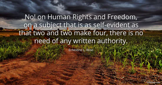 Rose, Ernestine L. (2026, January 16). No! on Human Rights and Freedom, on a subject that is as self-evident as that two and two make four, there is no need of any written authority. FixQuotes. https://fixquotes.com/quotes/no-on-human-rights-and-freedom-on-a-subject-that-90444/