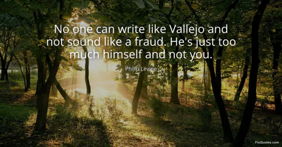 Levine, Philip. (2026, January 15). No one can write like Vallejo and not sound like a fraud. He's just too much himself and not you. FixQuotes. https://fixquotes.com/quotes/no-one-can-write-like-vallejo-and-not-sound-like-169657/