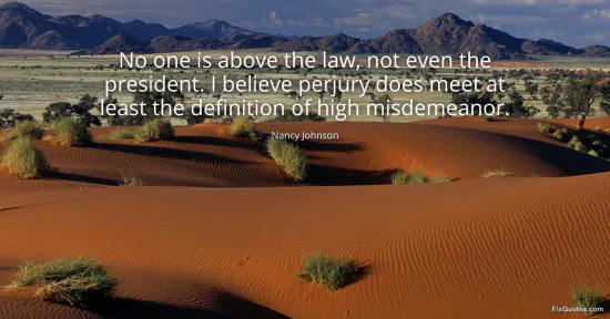 Johnson, Nancy. "No one is above the law, not even the president. I believe perjury does meet at least the definition of high misdemeanor." FixQuotes. January 16, 2026. https://fixquotes.com/quotes/no-one-is-above-the-law-not-even-the-president-i-132514/.