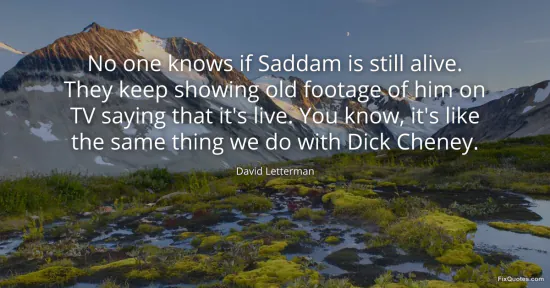 Letterman, David. "No one knows if Saddam is still alive. They keep showing old footage of him on TV saying that it's live. You know, it's like the same thing we do with Dick Cheney." FixQuotes. January 15, 2026. https://fixquotes.com/quotes/no-one-knows-if-saddam-is-still-alive-they-keep-147598/.
