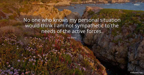 Bond, Kit. (2026, January 16). No one who knows my personal situation would think I am not sympathetic to the needs of the active forces. FixQuotes. https://fixquotes.com/quotes/no-one-who-knows-my-personal-situation-would-99700/