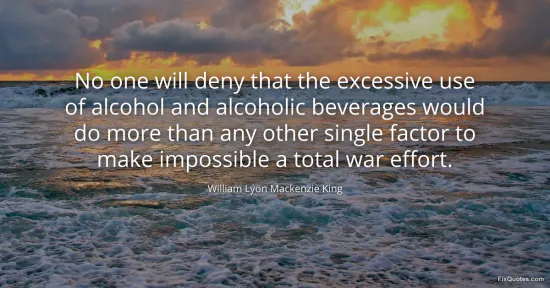King, William Lyon Mackenzie. "No one will deny that the excessive use of alcohol and alcoholic beverages would do more than any other single factor to make impossible a total war effort." FixQuotes. January 15, 2026. https://fixquotes.com/quotes/no-one-will-deny-that-the-excessive-use-of-166851/.