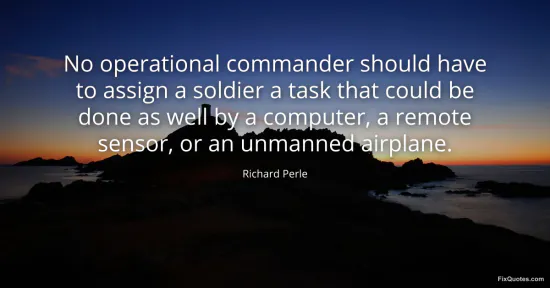Perle, Richard. (2026, January 15). No operational commander should have to assign a soldier a task that could be done as well by a computer, a remote sensor, or an unmanned airplane. FixQuotes. https://fixquotes.com/quotes/no-operational-commander-should-have-to-assign-a-164455/