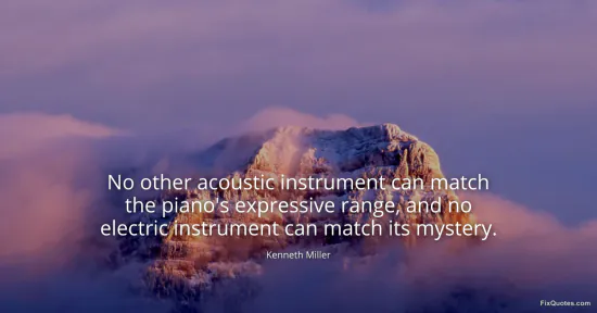 Miller, Kenneth. "No other acoustic instrument can match the piano's expressive range, and no electric instrument can match its mystery." FixQuotes. January 15, 2026. https://fixquotes.com/quotes/no-other-acoustic-instrument-can-match-the-pianos-170154/.